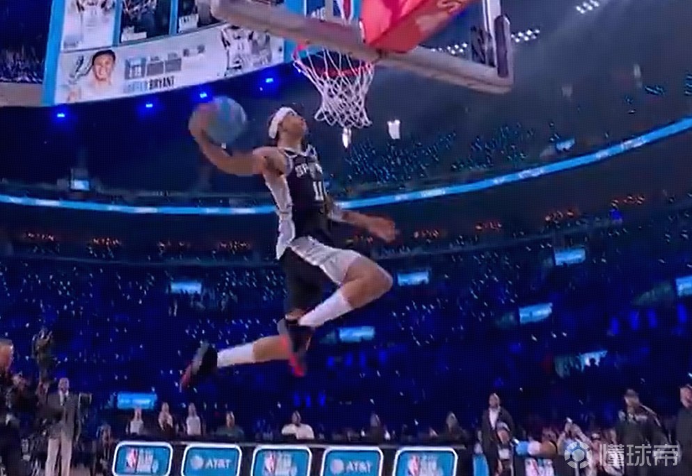 第一位登场的为马刺新秀卡特-布莱恩特,他奉献一记360度大风车扣篮,得到45.6分。