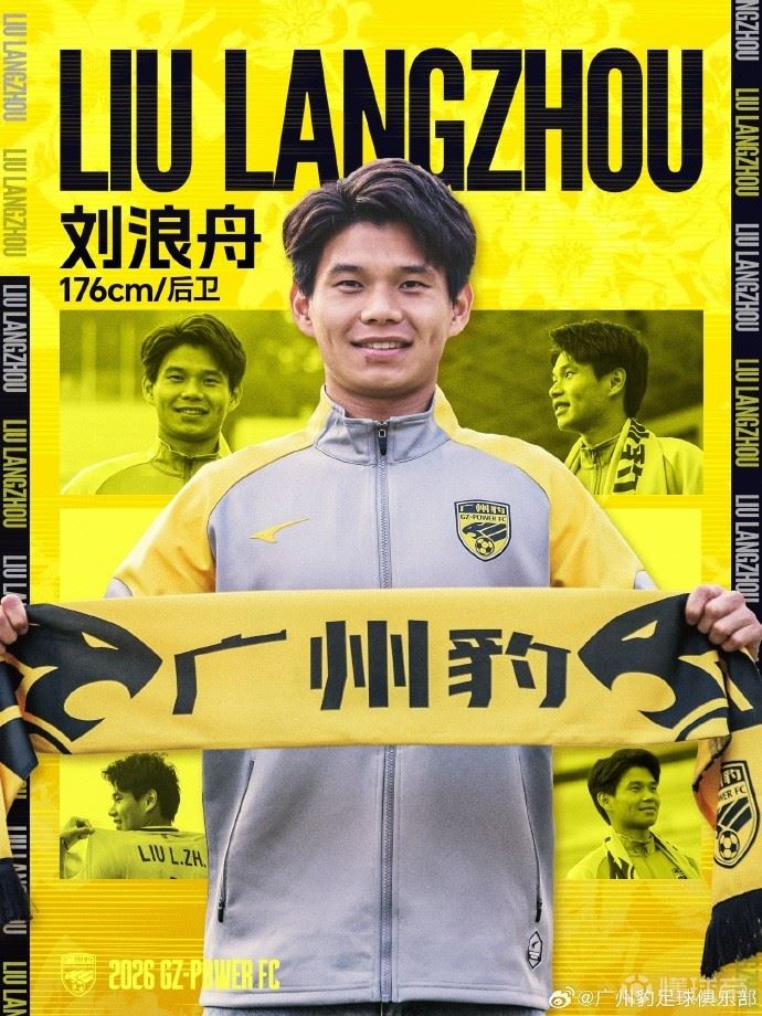 经与球员本人协商并达成一致,年轻实力派后卫刘浪舟正式加盟广州豹足球俱乐部。