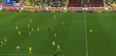 第45分钟,扳回一球,桑通兹后点抽射破门,南特1-3摩纳哥