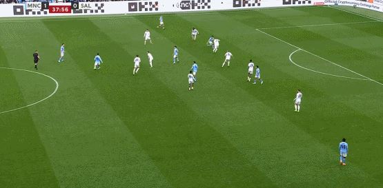 第38分钟,福登外围停球顺势抽射,皮球高出横梁