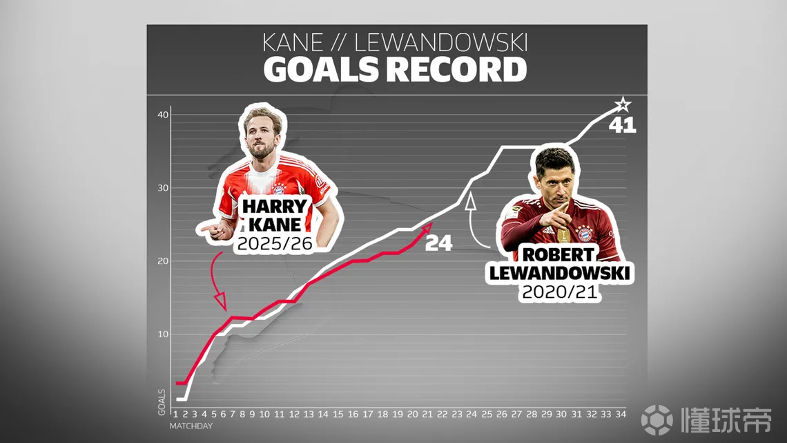 凯恩本赛季至今已打入24球。那个令人难忘的2020/21赛季,莱万在德甲第21轮战罢时已打入25球,仅比如今的凯恩多1球。奥利塞本赛季助攻数已达16次。托马斯・穆勒在2019/20赛季创下的单赛季21次助攻的德甲纪录,如今已岌岌可危。最后,截至第21轮,拜仁已轰入79球,场均进球数高达3.76粒,这一数据也创下了德甲联赛同期进球数的历史新高。德甲单赛季进球纪录同样由拜仁保持,1971/72赛季拜仁共打入101球,如今拜仁只需在剩余13轮再进23球就能刷新这一纪录,以当前的进攻状态,这一目标似乎唾手可得。