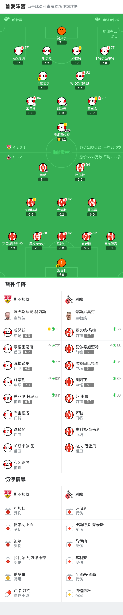 北京时间2月15日德国足球顶级联赛 联赛 第22轮,斯图加特主场对阵科隆。斯图加特德米罗维奇梅开二度,昂达夫破门。科隆阿赫破门。最终比分斯图加特 3-1 科隆。