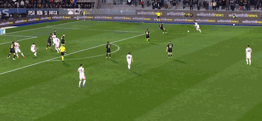 第71分钟,比萨后场长传,斯托基尔科维奇左侧倒三角回敲,洛约拉禁区内拿球,横向调整后起脚兜射破门,比萨扳平,1-1!