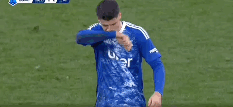 第89分钟,莫拉塔两黄变一红被罚下,在场边又与教练发生口角