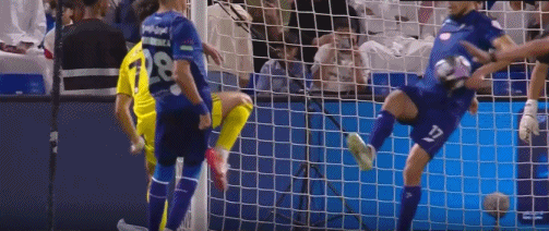 第84分钟,利雅得胜利球员投诉禁区内手球,VAR检查后没有点球