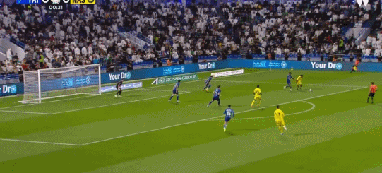 第78分钟,科曼传球,叶海亚抽射破门,利雅得胜利2-0哈萨征服