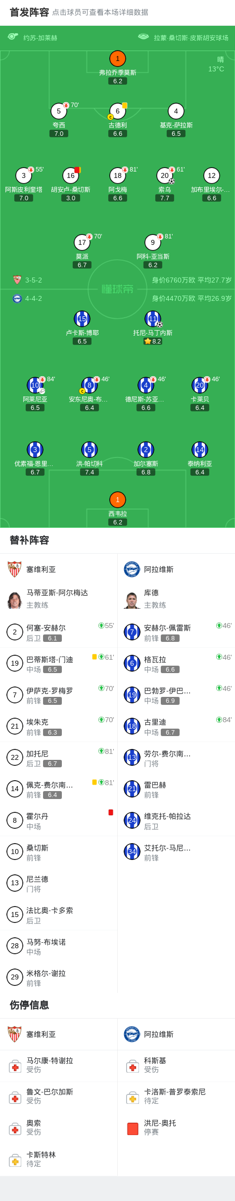 塞维利亚1-1阿拉维斯,索乌破僵,托尼-马丁内斯扳平比分