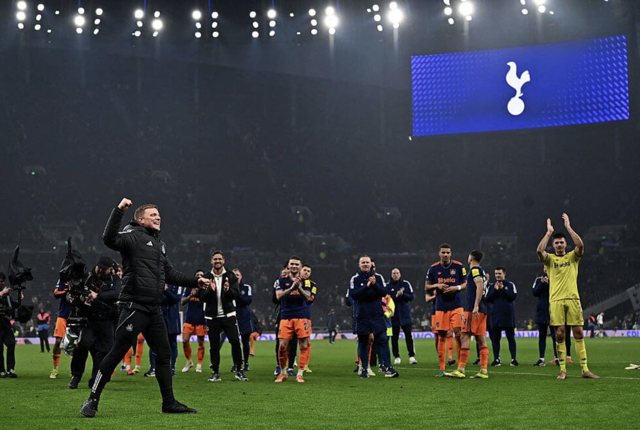 今晚,我们从托特纳姆热刺球场涌出,咯咯大笑、神采飞扬,雨水打湿了衣服却依旧高唱着:“埃迪-豪的黑白军团。”今晚,纽卡斯尔联2-1取胜,其他一切都不重要——积分榜上我们排第10不重要,三天前输给布伦特福德时响起的嘘声也不重要,那场失利仿佛让某种珍贵的东西碎裂,赛后豪的声音听起来也支离破碎。