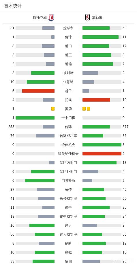 第84分钟,斯托克城后场被抢断,里德破门,富勒姆2-1