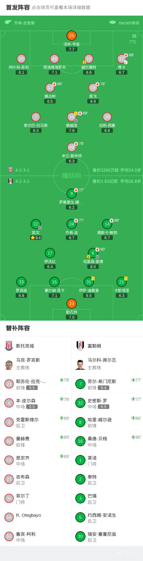 第55分钟,凯文利用个人能力得分,富勒姆1-1斯托克城