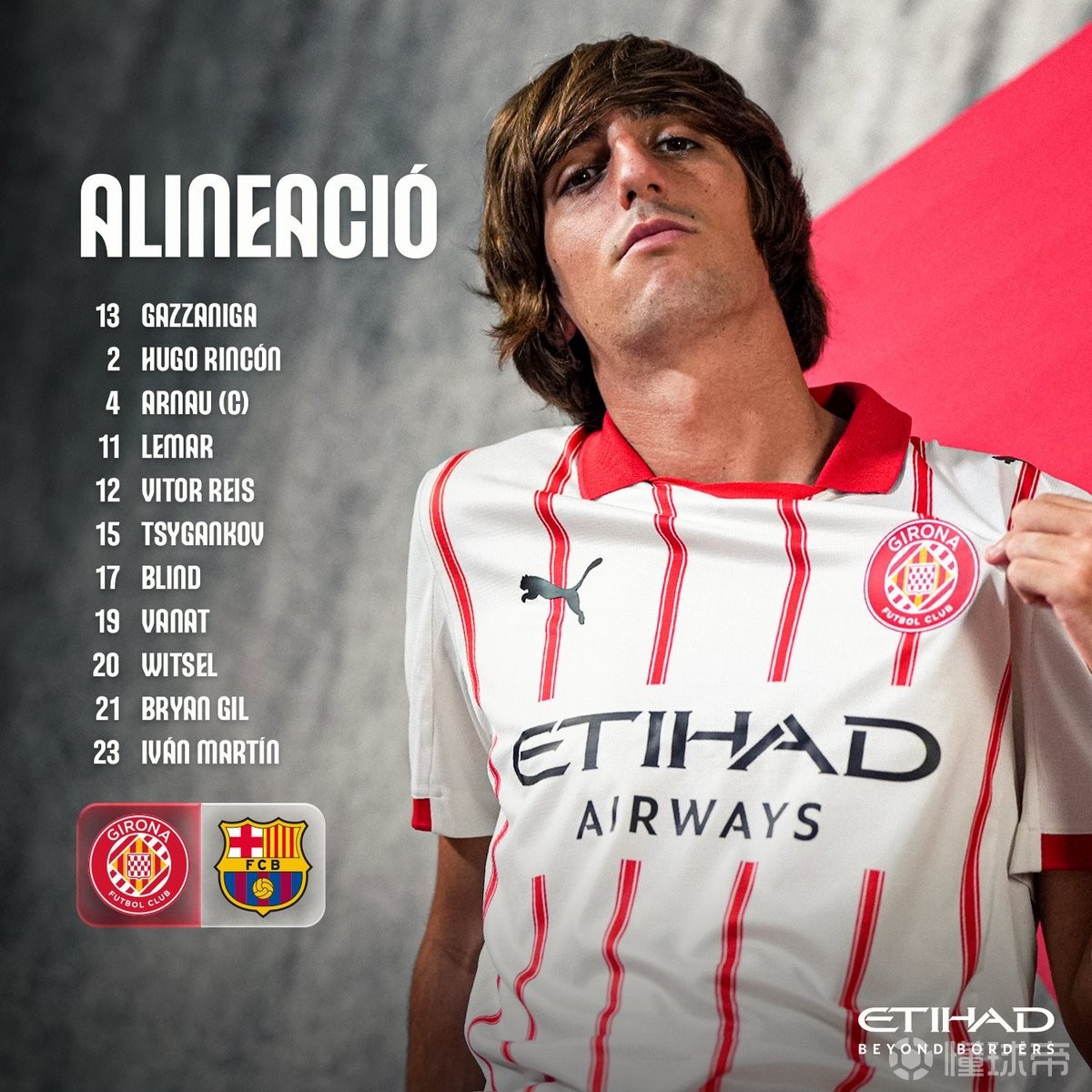 赫罗纳首发:13-加萨尼加、12-维托尔-雷斯、20-维特塞尔、17-布林德、2-乌戈-林孔、4-阿尔瑙-马丁内斯、11-勒马尔、23-伊万-马丁、15-齐甘科夫、19-瓦纳特、21-布赖恩-希尔
