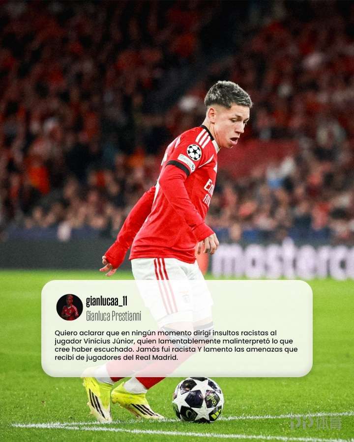 此前普雷斯蒂亚尼回应歧视,普雷斯蒂亚尼发文:我想澄清,我从未对球员维尼修斯·儒尼奥尔进行过任何种族歧视的侮辱,他很不幸地误解了他听到的内容。我从未对任何人有过种族歧视行为,我对收到的来自皇家马德里球员的威胁感到遗憾。