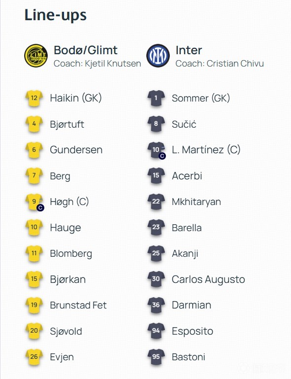 北京时间2月19日凌晨4点,欧冠淘汰赛附加赛首回合展开一场焦点战役,国米对阵博德闪耀。赛前,双方公布首发阵容。