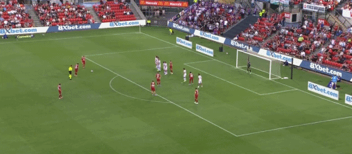 第12分钟,胡安-穆尼斯任意球破门,阿德莱德联1-0珀斯光荣