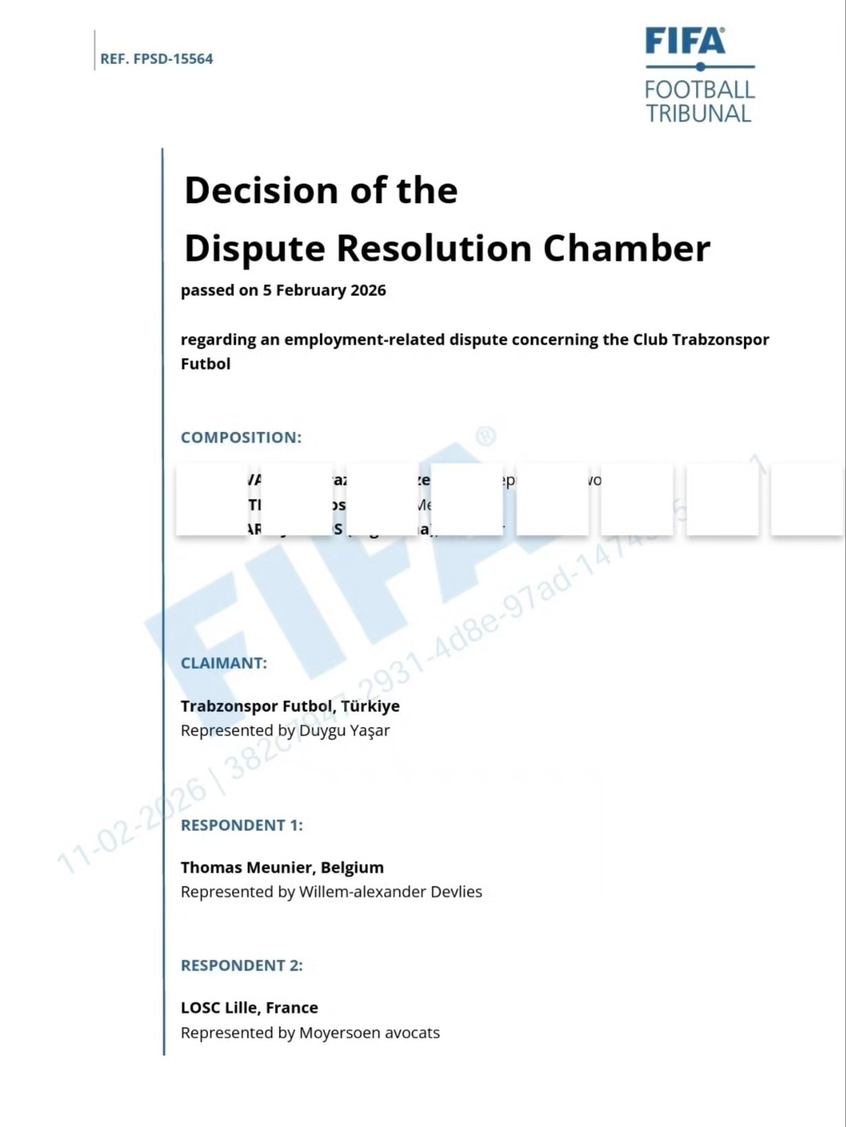 北京时间2月21日,比利时国脚默尼耶在社交媒体上发文并晒出了国际足联的裁决证明,解释了自己去年夏天与特拉布宗体育提前解约并自由转会至里尔所引发的争议。