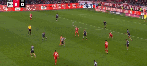 第68分钟,凯恩大禁区外远射轰入死角,拜仁3-0法兰克福