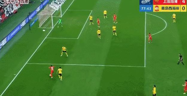 中超第2轮,上海海港vs青岛西海岸,第78分钟,安佩姆下底后横敲门前,武磊巧妙垫射完成梅开二度,海港4-0领先。