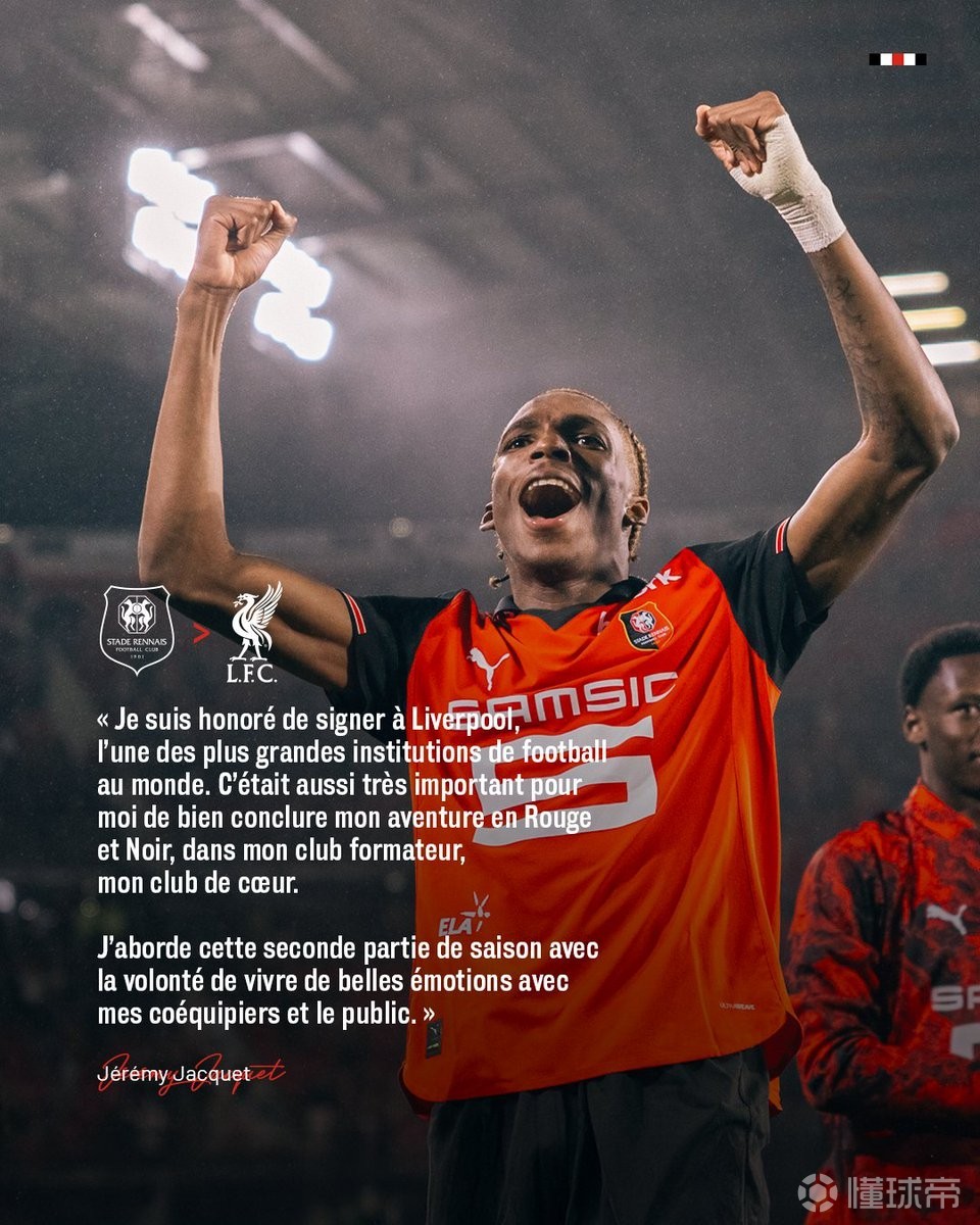 • 雅凯:我非常荣幸加盟利物浦,下半赛季将全力助雷恩圆满收官