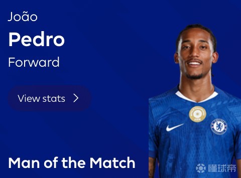 • 替补传射,若昂-佩德罗当选切尔西vs西汉姆全场最佳球员