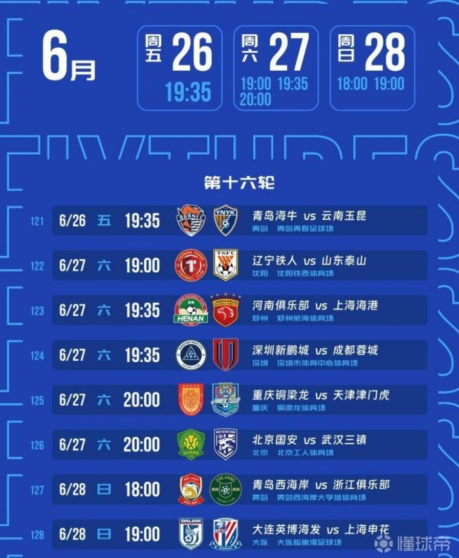 • 世界杯期间中超赛程:海港、成都、山东均1主3客,国安迎魔鬼赛程