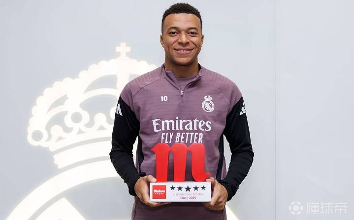 • 荣耀时刻,姆巴佩在训练基地领取了皇马1月最佳球员奖杯