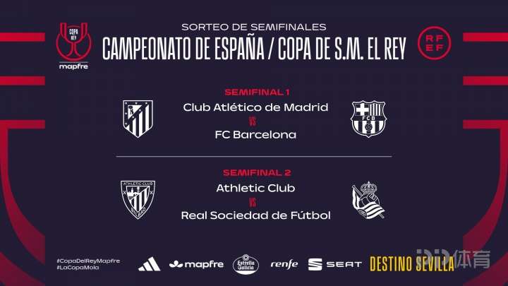 • 西班牙国王杯半决赛对阵:马竞vs巴萨,毕包VS皇社