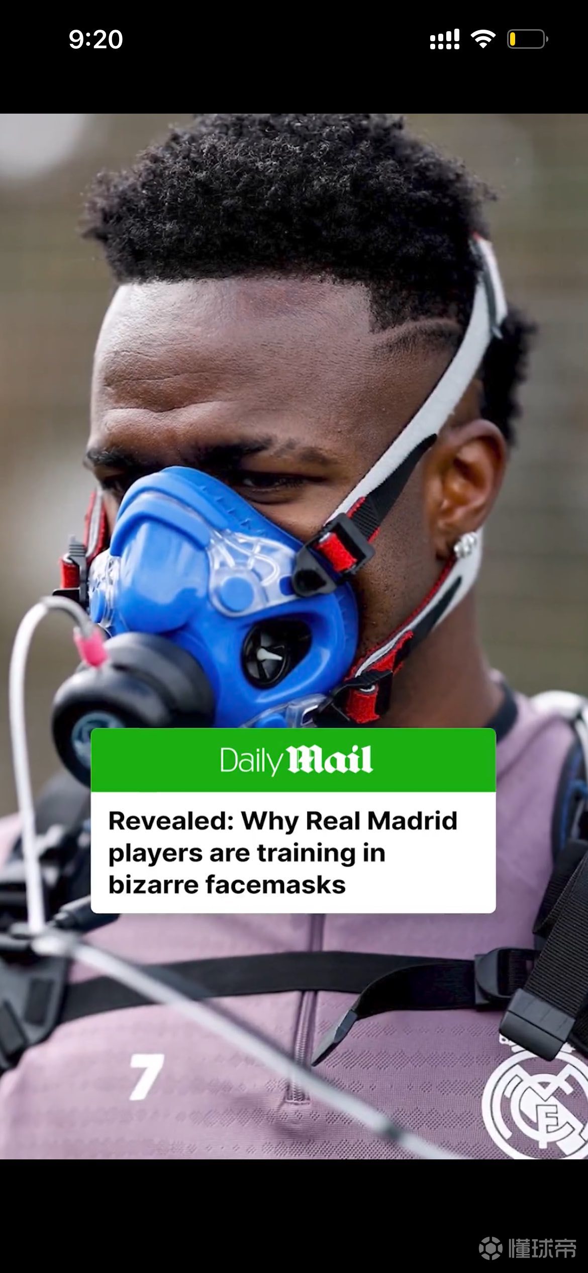 • 皇马球员近日被拍到戴着一种不同寻常的蓝色面罩进行训练