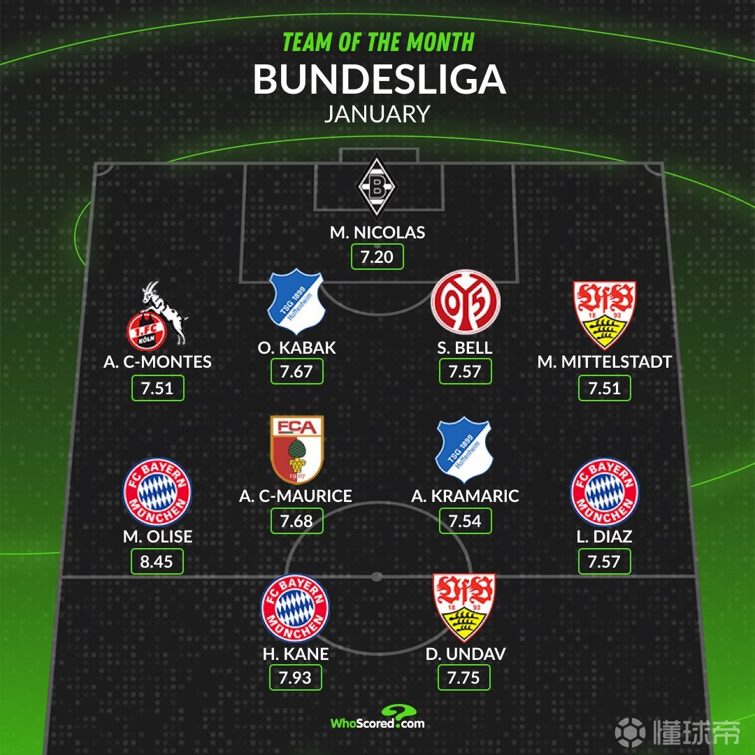 • 德甲月最佳阵容:凯恩、奥利塞、迪亚斯入选