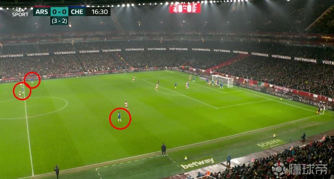 • 巧思,阿森纳罚角球时切尔西安排3名球员在中圈准备反击
