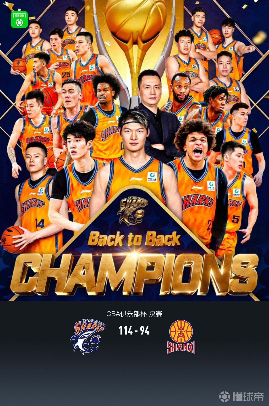 • 上海114-94山西卫冕俱乐部杯冠军 山西6人罚下