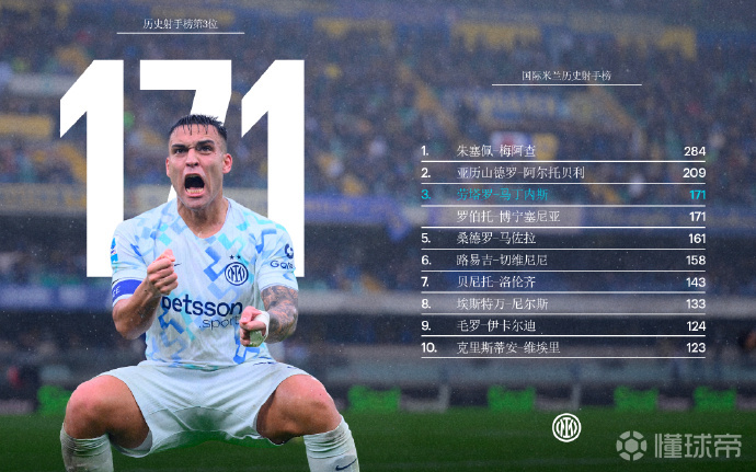 • 凭借本场比赛的进球,劳塔罗一共为蓝黑军团打进了171个进球