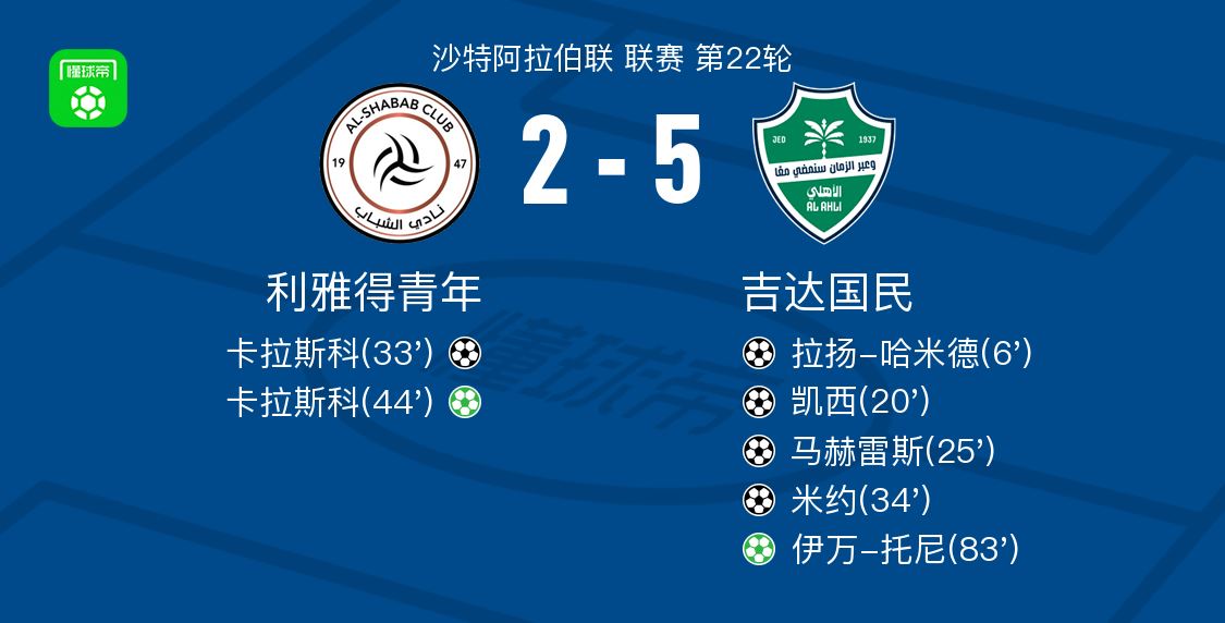 • 吉达国民5-2大胜利雅得青年,伊万-托尼点射、米约破门