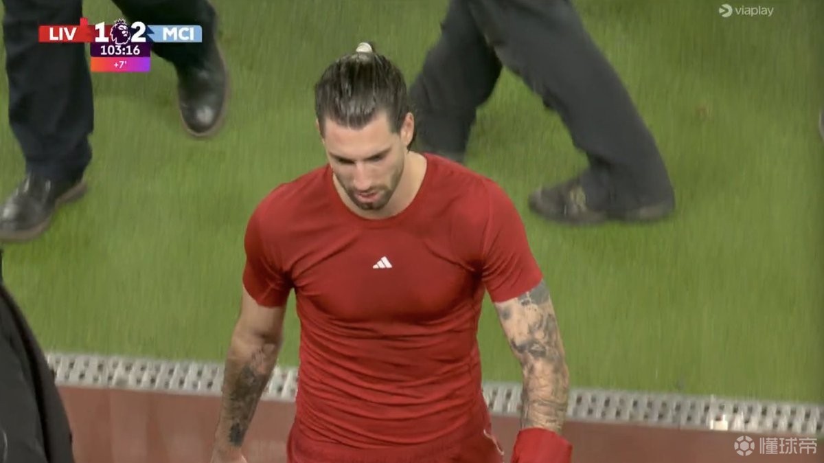 • 战曼城染红,索博斯洛伊利物浦生涯首次领到红牌