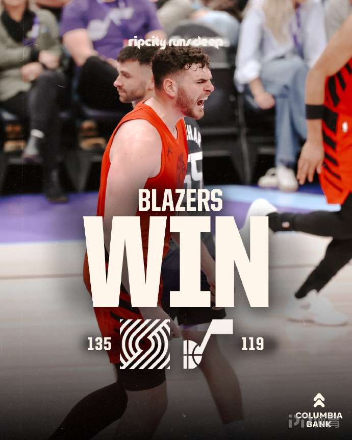 • 杨瀚森3分钟2分 开拓者135-119胜爵士