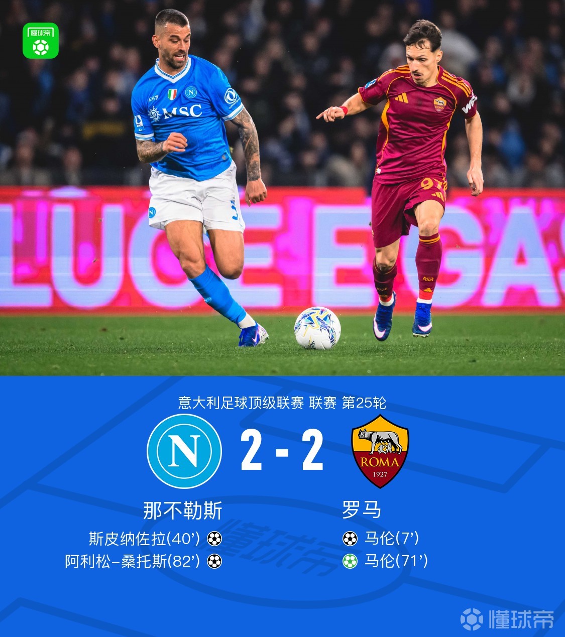 • 那不勒斯2-2罗马,马伦双响,斯皮纳佐拉破旧主,阿利松破门