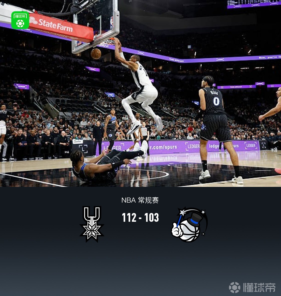 • 马刺6人上双112-103力克魔术,文班亚马25分8板5帽